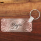 Elégante parties scintillant en or rose avec étincelles contre une image graphique en feuille de métal brossé correspondant. On peut customiser le monogramme de calligraphie fantaisie noir et blanc au centre. Tous les éléments brillants et brillants de ce design girly moderne sont des graphismes numériques. Une précieuse fête de porte - clé monogrammée favorise sa fête d'anniversaire spéciale. Une taille agréable pour un nom d'employé.