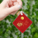 Papier chinois doré coupé d'un Dragon + nuages Auspicious chinois dorés (graphique en ligne) + cadres chinois rouge foncé dans les quatre coins. Conception sur porte - clé carré avec monogramme (avant et arrière) sur arrière - plan rouge. Carte de voeux, carte postale, autocollant et plus encore. Parfait pour le Nouvel An du Dragon chinois 2024 ou anniversaire (personnes nées dans l'année du Dragon).