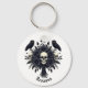A Gothic bouquet in black, with a white skull in the center, one on each side, and two black owls at the top makes a beautiful keychain. Unusual, striking design, perfect for those who embrace the dark.