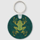 Cette grenouille tribale est décorée de tourbillons dorés complexes et de motifs à points. L'intérieur de la grenouille est peint d'une couleur bleu profond qui se retrouve dans l'arrière - plan donnant au motif un beau contraste. Une ombre tombe juste sous la grenouille symétrique qui semble flotter juste au-dessus de la surface de ce porte - clé. Ce design stylisé est une représentation saisissante de cette merveilleuse petite créature.