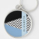 Porte-clés Grey Zigzag, Grey Chevron, Bleu, Votre Nom