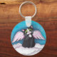 Même les chats ont un ange gardien. Porte - clé Whimsical de chat d'ange noir. Peinture originale : acrylique sur toile 2008 Lisa Marie Robinson