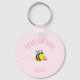 Belle bague à clé d'abeille peinte à la main, avec une bosse tenant un gâteau d'anniversaire rose. Personnalisez avec le nom de votre enfant.
