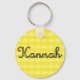 Porte - clé mignon dans petit motif de coeurs jaunes avec le nom Hannah imprimé dessus.