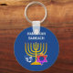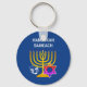 Porte - clé HANOUKKA moderne et élégant, conçu avec faux menorah or, l'étoile colorée de David et le dreidel blanc plus CUSTOMIZABLE GREETING - HANOUKKA SAMEACH, pour que vous puissiez créer votre propre salutation, par ex. Joyeux Chanoukah. Idéal pour la saison Hanoukka comme des cadeaux de faveur ou des farces de bas. Choisissez parmi une large gamme de vêtements et cadeaux Hanoukka, conçus par Berean Designs. Offres assorties disponibles.