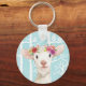Porte-clés Happy Animal avec Fleurs en Bleu Forêt-Mouton