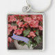"THE WORLD'S BEST MOM!" THIS LARGE PREMIUM SQUARE KEYCHAIN FEATURES PINK BEGONIAS.
