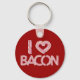 Bacon disant avec des lettres créées à partir de bandes de bacon. Couleur arrière - plan personnalisée. Texte personnalisé à l'arrière.