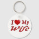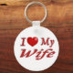 Porte - clé avec je coeur ma femme en texte rouge 3D. Porte - clés ronds et carrés disponibles en plusieurs styles.
