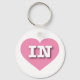 Ce porte - clé est doté d'un coeur rose vif contenant les lettres coques en haut, blanc et gras IN, l'abréviation officielle de Indiana, l'état hoosier.