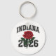 This design serves as a powerful commemorative piece, featuring a bold collegiate "INDIANA" arc and the year 2026 centered around a timeless red rose. The varsity-style typography and traditional floral art create a balanced look that celebrates both state pride and significant milestones.