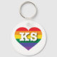 Ce porte - clé est doté d'un coeur orné d'un motif de fierté arc-en-ciel et de lettres majuscules, KS, l'abréviation officielle du Kansas, l'état du tournesol. Montrez vos vraies couleurs, soutenez l'égalité dans le mariage et célébrez le gay pride.