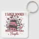 Design coloré et dynamique, avec une pile de livres avec des fleurs, des papillons et des champignons. Le texte coloré dit : "J'aime les livres plus que les gens". Ce design est disponible sur une grande variété de produits.