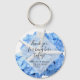 Personnalisez les porte-clés et donnez comme faveurs de mariage. Fleurs d'hydrangée bleue et une étoile de mer blanche est le design, avec deux places pour votre texte personnalisé. Merci aux invités dans un court message et ajouter des noms et date mariage. Des rabais sur les commandes en vrac s'appliquent. Correspond aux objets de la ligne de design Seaside Garden Blue. Vous pouvez changer le style et la forme, mais le rond est le moins cher.
