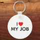 La typographie rouge "I HEART MY JOB" sur un porte - clé rond. Vous pouvez modifier les couleurs du texte noir et la forme du coeur rouge vif. L'arrière - plan présente une couleur blanche et solide minimaliste qui peut également être changée.