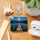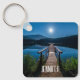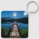 Un porte - clé avec une belle photo d'une jetée en bois qui s'étire sur un lac calme. Ciel nocturne couvert d'étoiles et belle pleine lune.