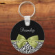 Personnalisez en ajoutant le nom de n'importe quelle fille à ce joli porte - clé empreinte de léopard noir et blanc avec un joli ruban vert ressort attaché dans un arc élégant. Ce design poster de animal chic et élégant est une image à plat, et ne contient pas de ruban réel.