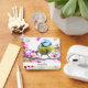 Porte - clé avec une photo extraordinaire du plus mignon petit oiseau perché sur une branche recouverte de fleurs roses et de feuilles verts. L'oiseau a une tête bleue et un corps jaune avec un visage très doux. Adorable.