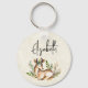 Un porte-clés avec un joli cerf couché entouré de flore feuillue. Design de style rustique boho.