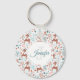 Porte - clé avec un adorable motif de Noël. Joli cerf d'hiver avec des bois qui défilent autour d'une forêt d'arbres et d'herbes. Un cercle blanc superposé avec votre nom et votre monogramme initial à l'intérieur.
