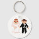 Quelque chose pour un mariage est ce design mignon d'un couple marié. Le pont et le marié et debout là-dedans tenues mariages main dans la main et juste l'air si adorable. Ce couple qui vient d'être marié a l'air super sur ce porte - clé. Parfait pour vous-même ou comme cadeau