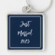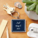 Le porte - clé est présenté dans un bleu marine saisissant avec une combinaison blanche, un classique gardien pour le couple. Arrière - plan bleu marine avec écriture élégante blanche. Customisez cet objet en ajoutant votre propre date, etc.