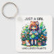 Porte - clé personnalisé pour toute fille qui aime les plantes. Graphique mignon dans un style de jeu vidéo pixel. Une fille tenant un arrosage peut être entourée de beaucoup de plantes.