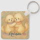 This is a soft illustration of two fluffy dogs sitting close together in blended, warm pastel colors denoting friendship and love.