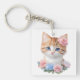 Porte-clés Kitten avec Fleurs Féline Whimsical