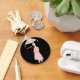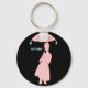 Qu'il pleuve. Un design vectoriel minimaliste avec une femme en robe rose tenant un parapluie rose tandis que des gouttes de pluie géantes tombent sur elle. Un grand cadeau pour les amateurs de jours pluvieux, d'art minimaliste et de design numérique.