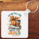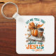 Design paisible et coloré avec une scène automne / automne avec un livre ouvert, citrouille et café. Le texte inspirant et coloré dit : "Laissez-moi vous parler de mon Jésus". Ce design est disponible sur une grande variété de produits.