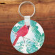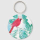 Cette image est conçue avec un cardinal rouge assis sur une branche enneigée d'un pin. Le cardinal est assis et regarde les flocons de neige tomber du ciel. Le sol est recouvert de neige. Ce porte - clé sera une grande pièce à posséder ou à donner en cadeau.