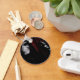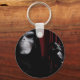 Un crâne masqué porté avec une cape à capuchon noir et une main laquée noire vous invitant à venir. Un rideau de marron sert de toile de fond à cette photo. Il est disponible sur différents styles et tailles de porte - clé.