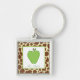 Un porte - clé comportant un arrière - plan de copie de girafe. Carré vert d'intérieur d'illustration de pomme au centre. Personnalisez avec votre nom.