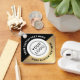 Porte - clé double face avec votre logo personnalisé sur un arrière - plan blanc et rond entouré de texte circulaire sur l'avant et de code QR sur l'arrière. Arrière - plan de dégradé noir et or (image imprimée). Modifiez les polices et les couleurs de police, déplacez et redimensionnez les éléments à l'aide de l'outil de conception.