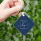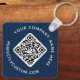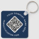 Porte - clé double face avec votre logo personnalisé, code QR et texte personnalisé sur un arrière - plan bleu foncé ou couleur personnalisée. Modifiez les polices et les couleurs de police, déplacez et redimensionnez les éléments à l'aide de l'outil de conception.