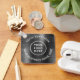 Porte - clé promotionnel simple pour votre entreprise ou organisation sur un arrière - plan métallique gris foncé brossé / argent faux. Ajoutez votre logo ou code QR et deux lignes de texte blanc customisé, comme le nom de votre entreprise, le slogan, merci ou laissez vide.