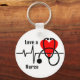 Love a Nurse Heart & Stethoscope Porte - clé avec la couleur et le texte personnalisables de l'arrière - plan.