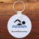 Un keyring avec un slogan amusant, pour tous ceux qui aiment nager. Texte simple en noir avec un coeur rouge, et image stylisée d'un nageur, sur un arrière - plan bleu pâle. #LoveSwimming
