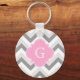 Porte-clés Lt Deux Gris Blanc Chevron rose Quatrefoil Monogra