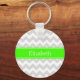 Porte-clés Lt Grey Blanc Chevron Lime Vert Nom Monogramme