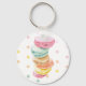 Illustration d'une tour délicatement équilibrée de macarons rose, vert, orange, marron et jaune. Une spécialité française et une carte ou un cadeau délicieux pour un ami spécial ou qui aime les sucreries.