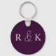Élégant porte - clé monogrammé personnalisé avec élégantes initiales beige clair sur un riche arrière - plan violet foncé. Parfait pour les couples, Personnalisez maintenant pour ajouter les initiales des couples.