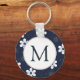 Plutôt bleu marine et blanc motif floral moderne sur porte - clé personnalisé.