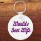 Porte - clé avec la meilleure épouse du monde en texte violet 3D. Porte - clés ronds et carrés disponibles en plusieurs tailles.