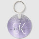 Personnalisez facilement ce design porte - clé chic et branché avec une jolie parties scintillant brillante en argent sur un arrière - plan métallique brossé violet.