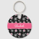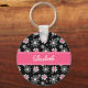 N'importe quelle fille adorerait avoir son nom personnalisé sur ce mignon porte - clé rose et noir avec des fleurs marguerites girly rétro mod en noir et blanc avec de jolis centres roses.