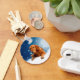 Un chien Golden Retriever mignon assis dans la neige avec le ciel bleu et les étoiles.