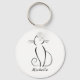 Petit chat noir sur un porte - clé arrière - plan blanc. Personnalisez ce porte - clé élégant avec votre nom.