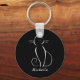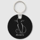 Porte-clés Minimaliste Chat Blanc Sur Noir Ajouter Nom